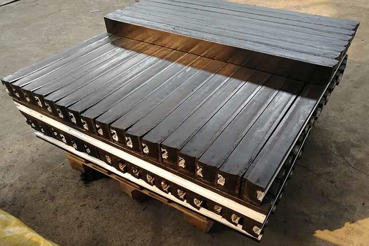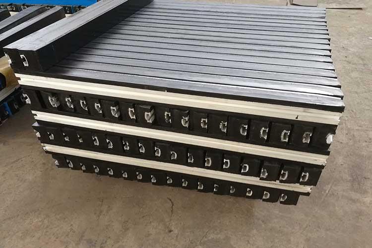 緩沖條是用來對落料口的輸送帶降低物料沖擊處理的一種材料,通常配合緩沖床進行使用。不同的工礦條件,不同的皮帶機設計,不同的使用環境,不同的安裝尺寸決定了緩沖條規格及樣式有所不同。緩沖條用優良的高彈性特種橡膠層充分有效的吸收了物料下落時的沖擊力,大大降低了物料下落時對輸送帶的沖擊,改善了落料點的受力狀況。使輸送帶與緩沖條之間的摩擦系數降低且耐磨性好。